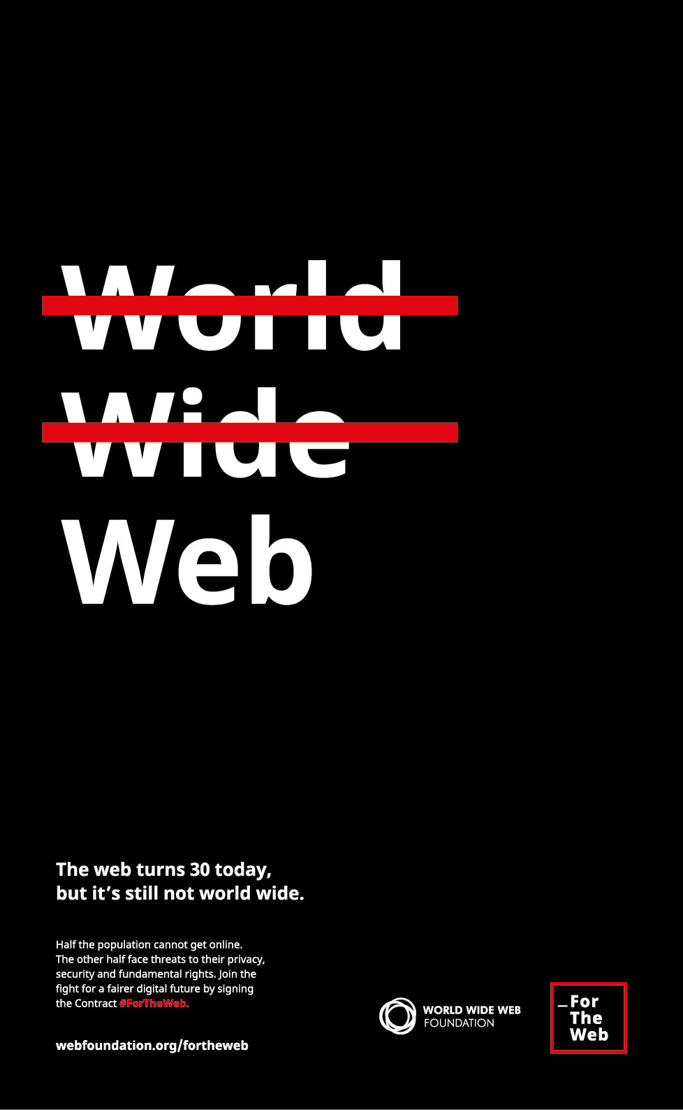 To mark the thirtieth anniversary of the web, the Web Foundation wanted to run a bold print ad in the FT to raise awareness of digital inequality, and encourage people to sign their Contract for the Web.